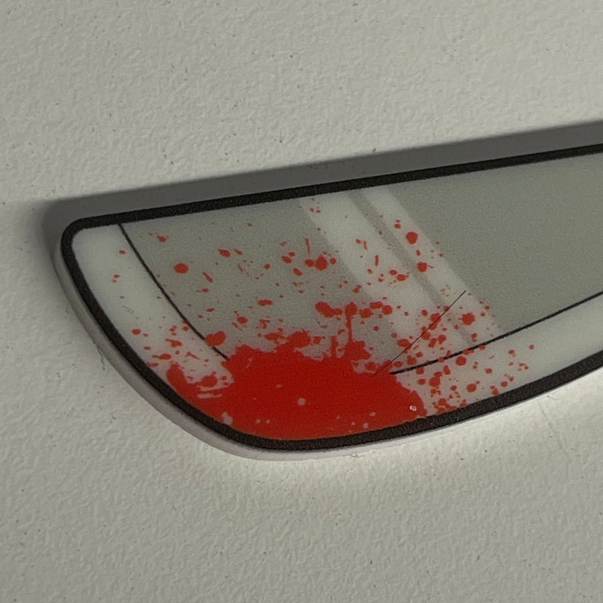 These decorative charms were designed, laser cut, and UV printed by Double K, in our studio, using our professional equipment. First, we cut the shape from an acrylic sheet, then placed the cut out onto our professional UV printer and applied our custom design to the front. This charm is about 3.5" by a little under 1"