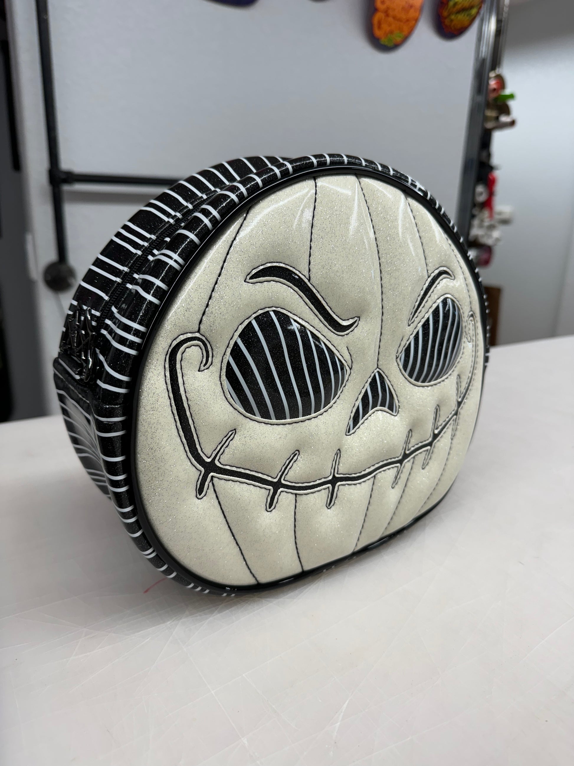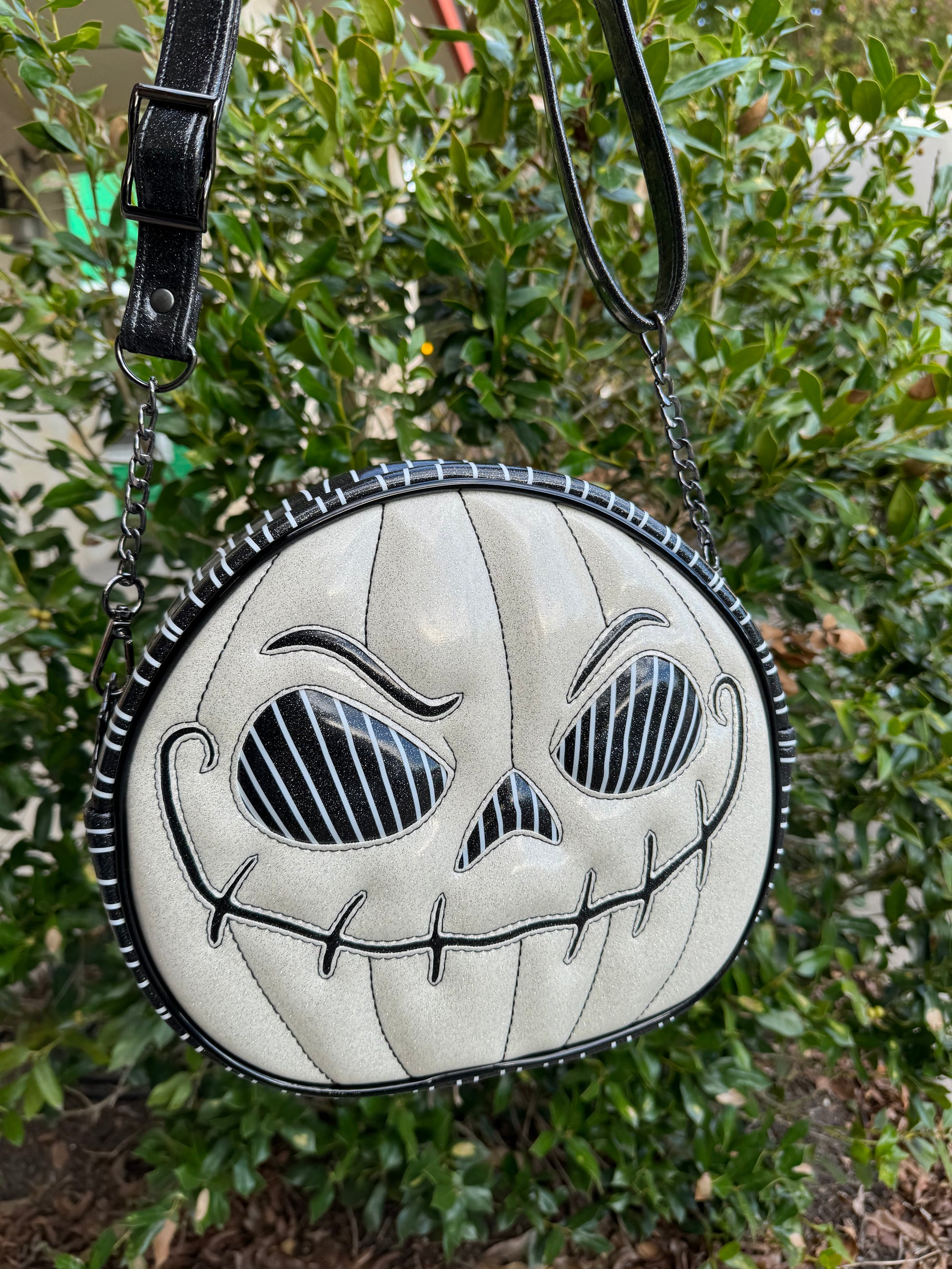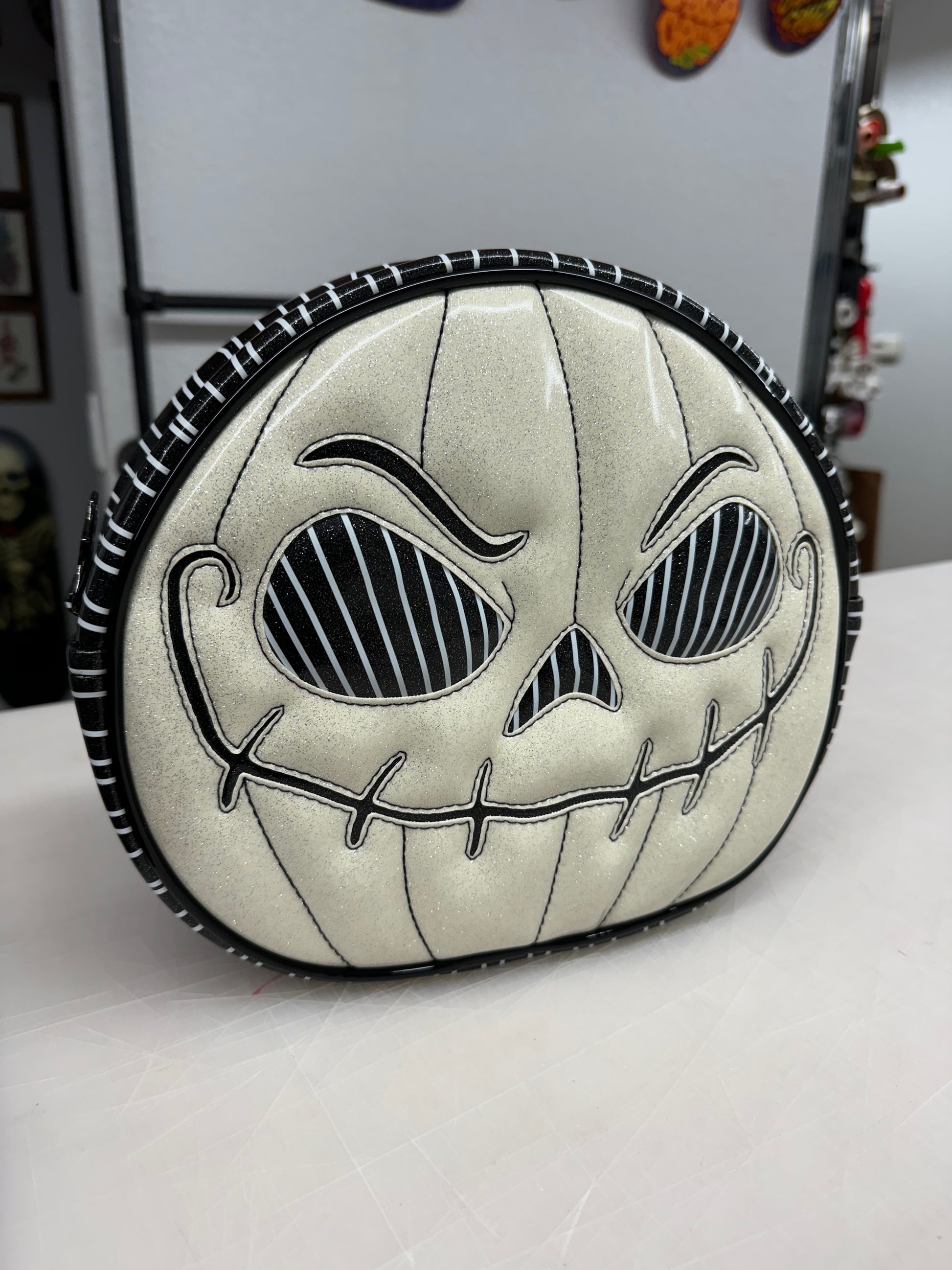 Face: White glitter, with black glitter behind, and white printed stripes on the eyes and nose. Larger eye shape shown in photos.