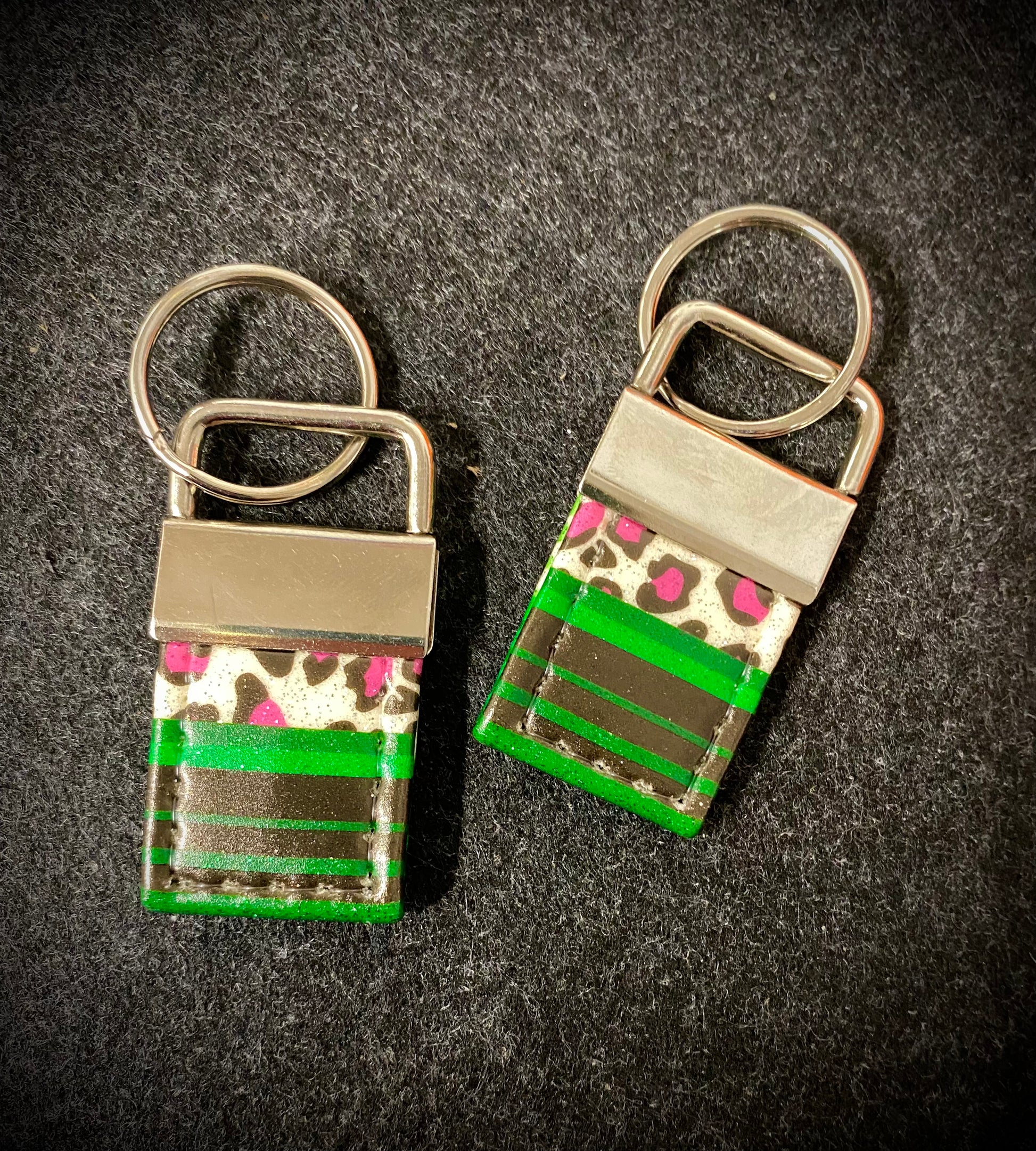 Keychain-Green and Black Serape Stripes with Pink Leopard