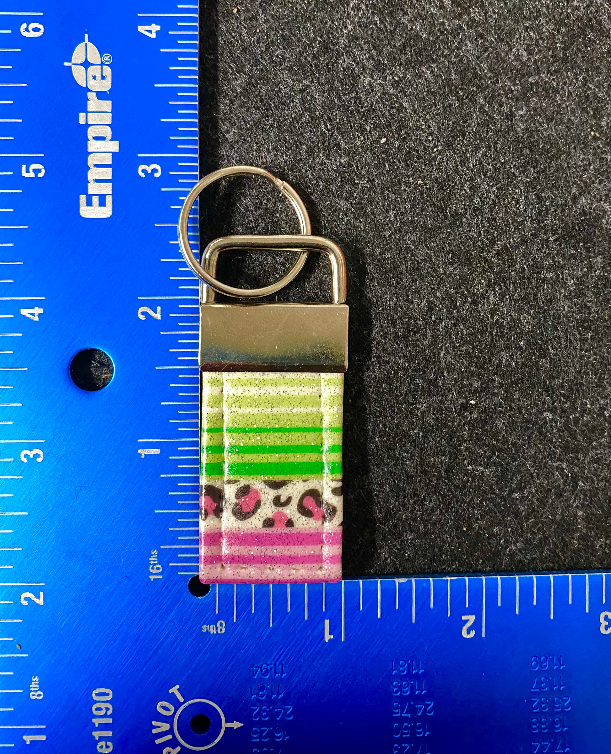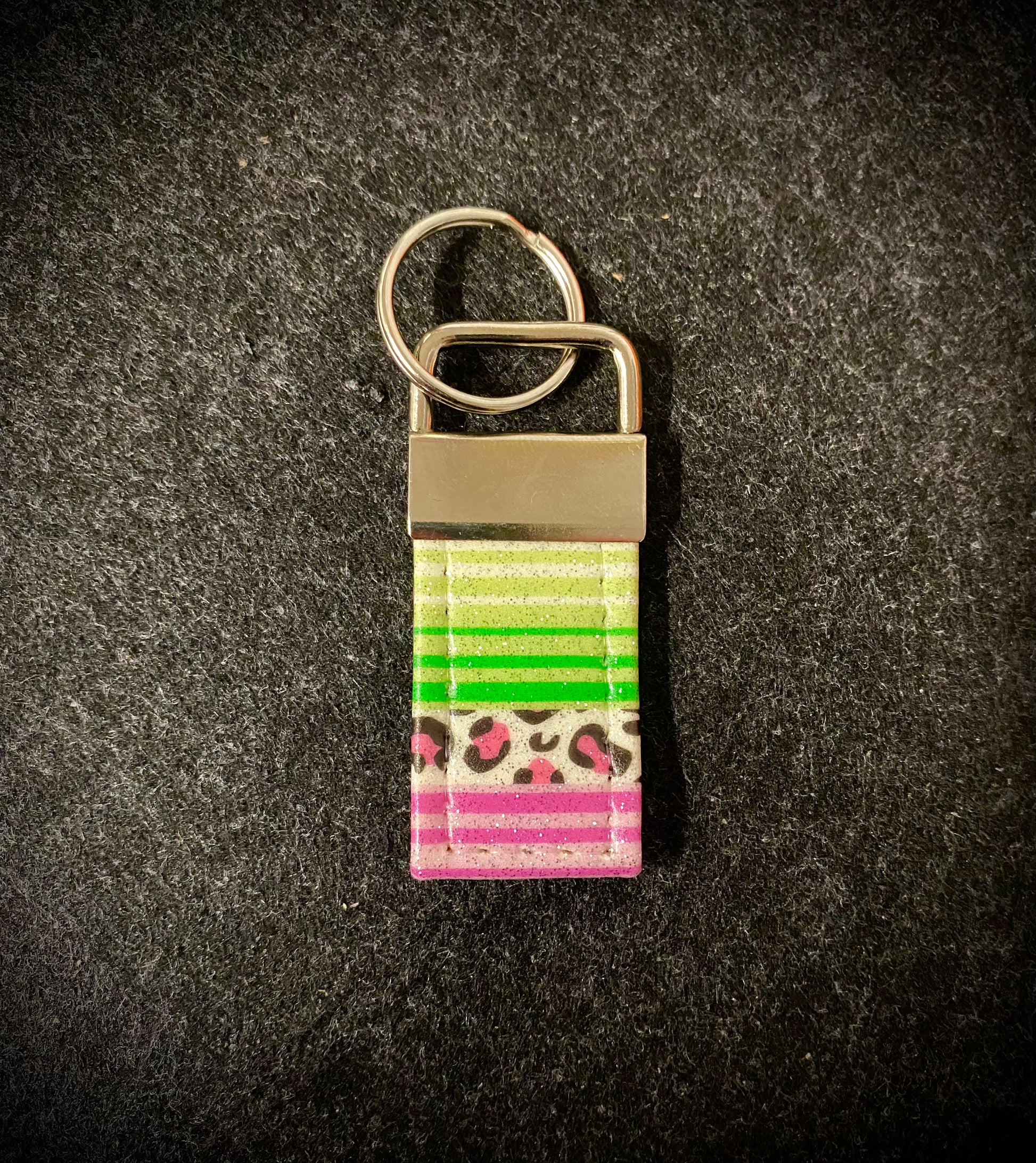 Keychain-Green and Purple Stripes with Pink Leopard-Shorter