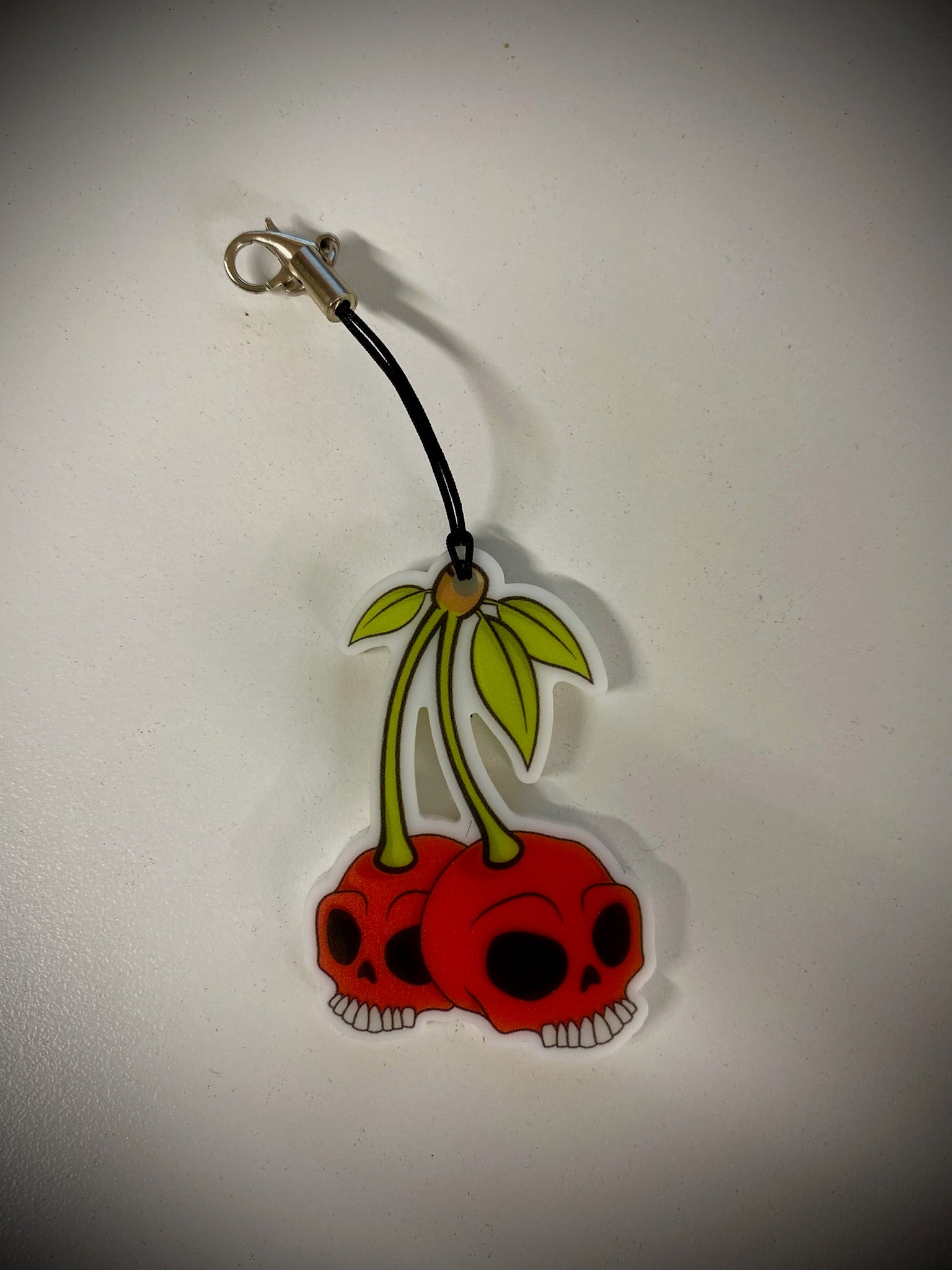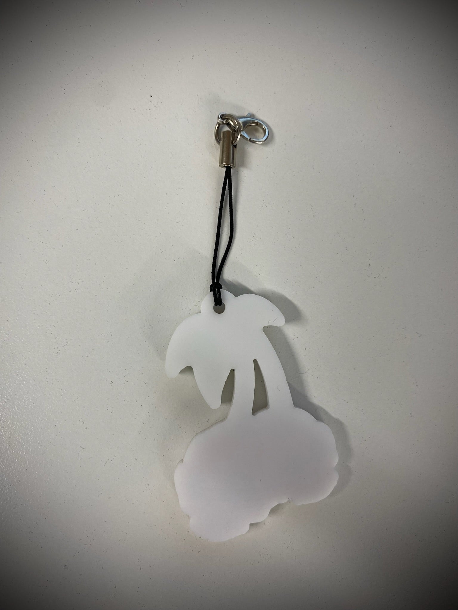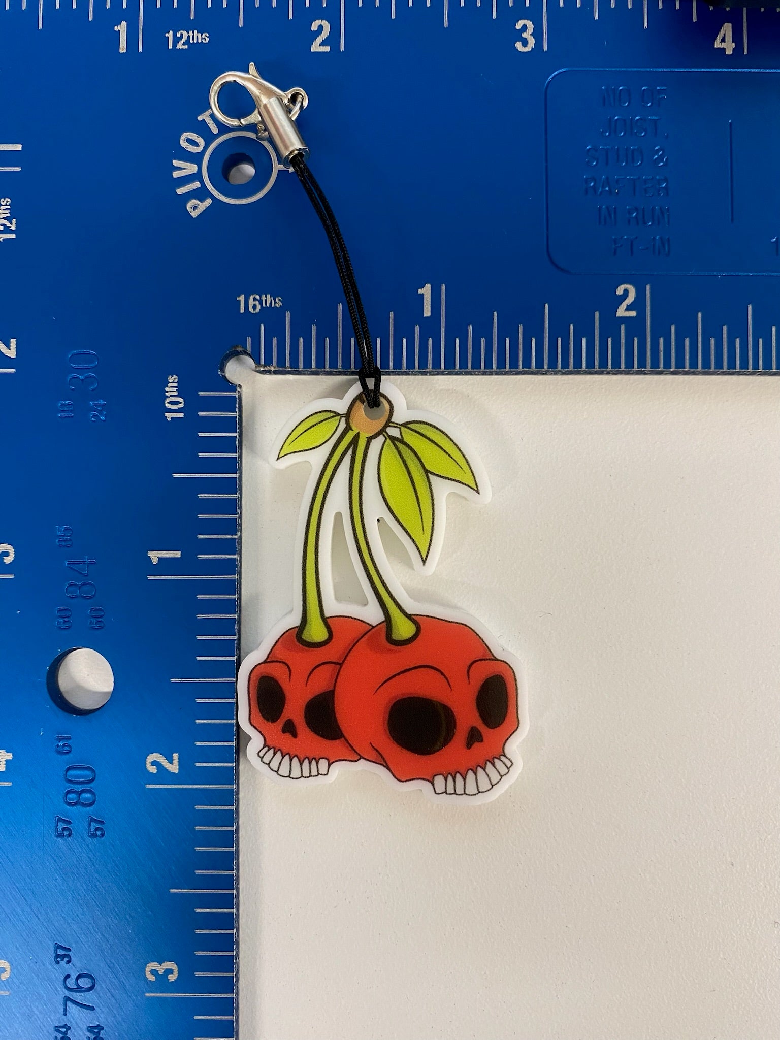 These decorative charms were designed, laser cut, and UV printed by Double K, in our studio, using our professional equipment. First, we cut the shape from an acrylic sheet, then placed the cut out onto our professional UV printer and applied our custom design to the front. These measure roughly 1 1/2" x 2 1/8".