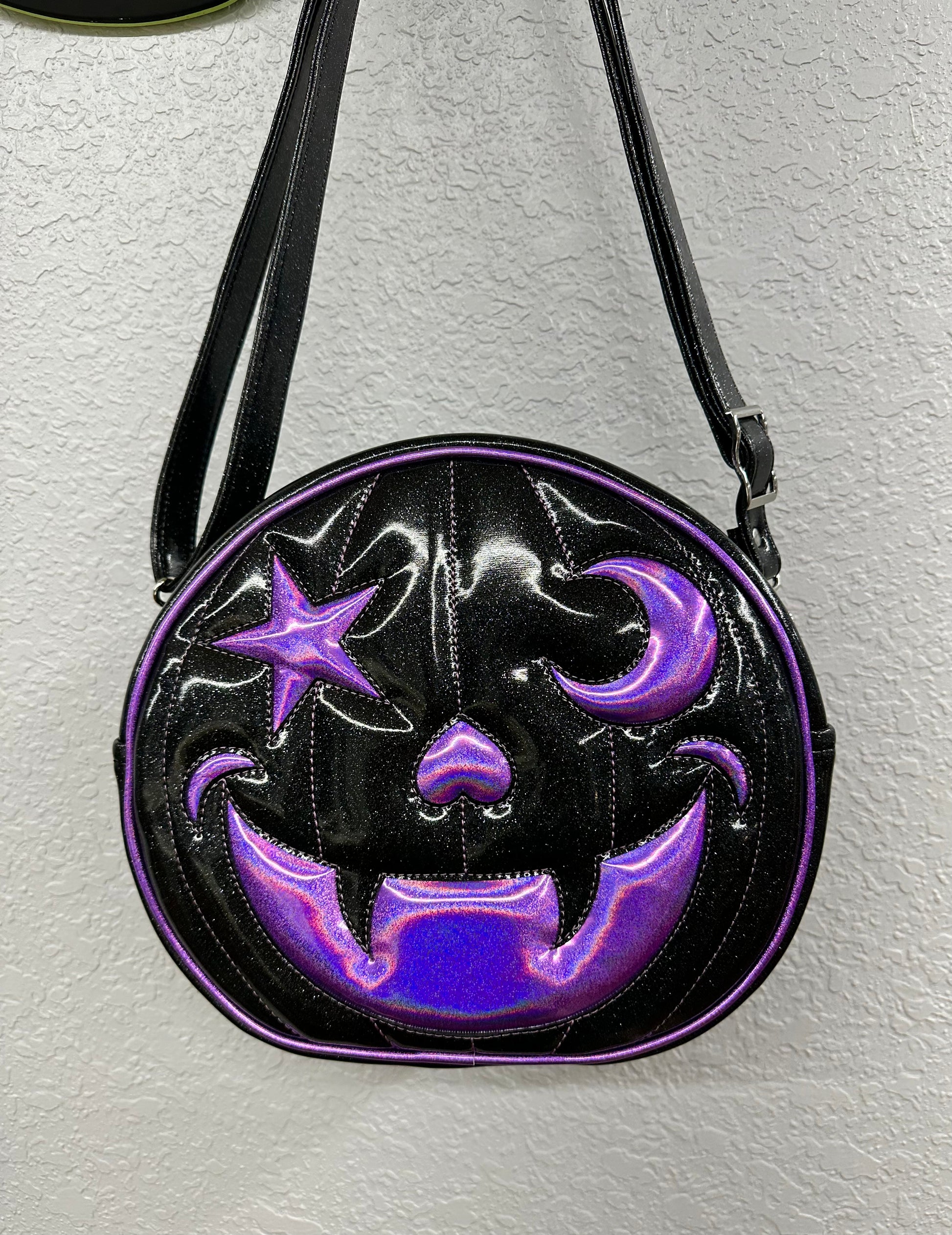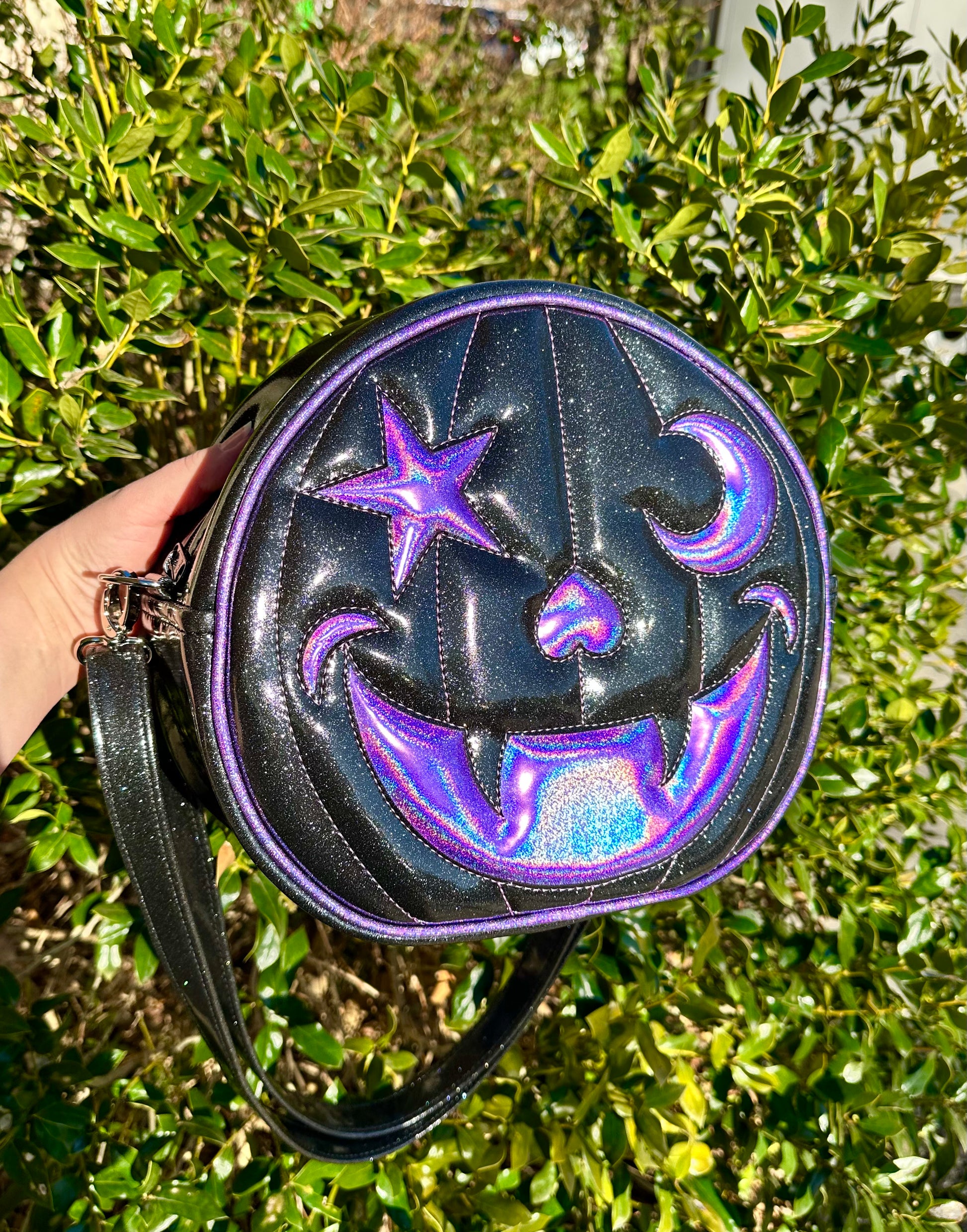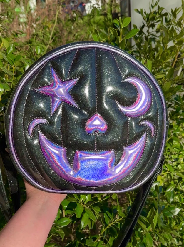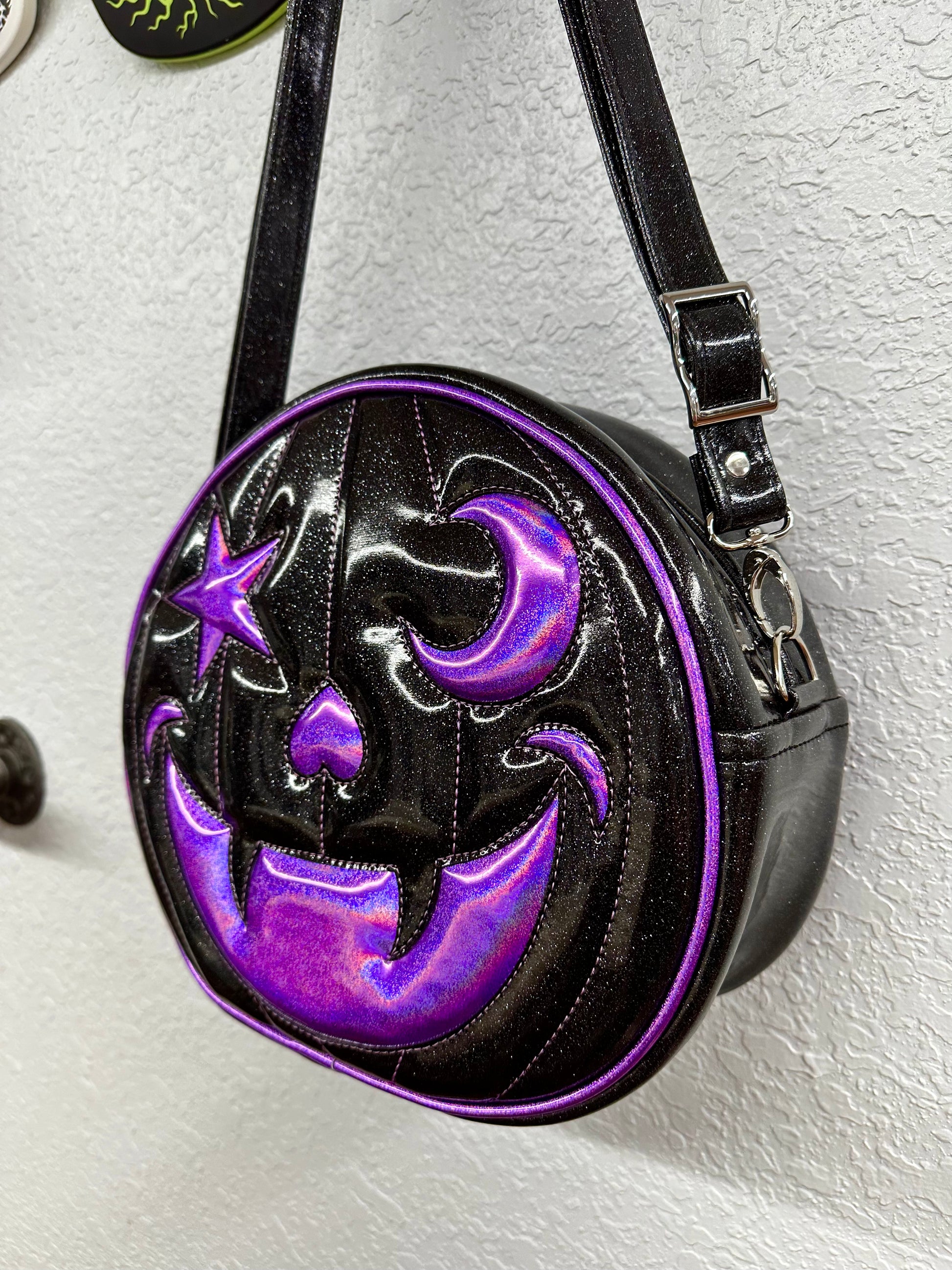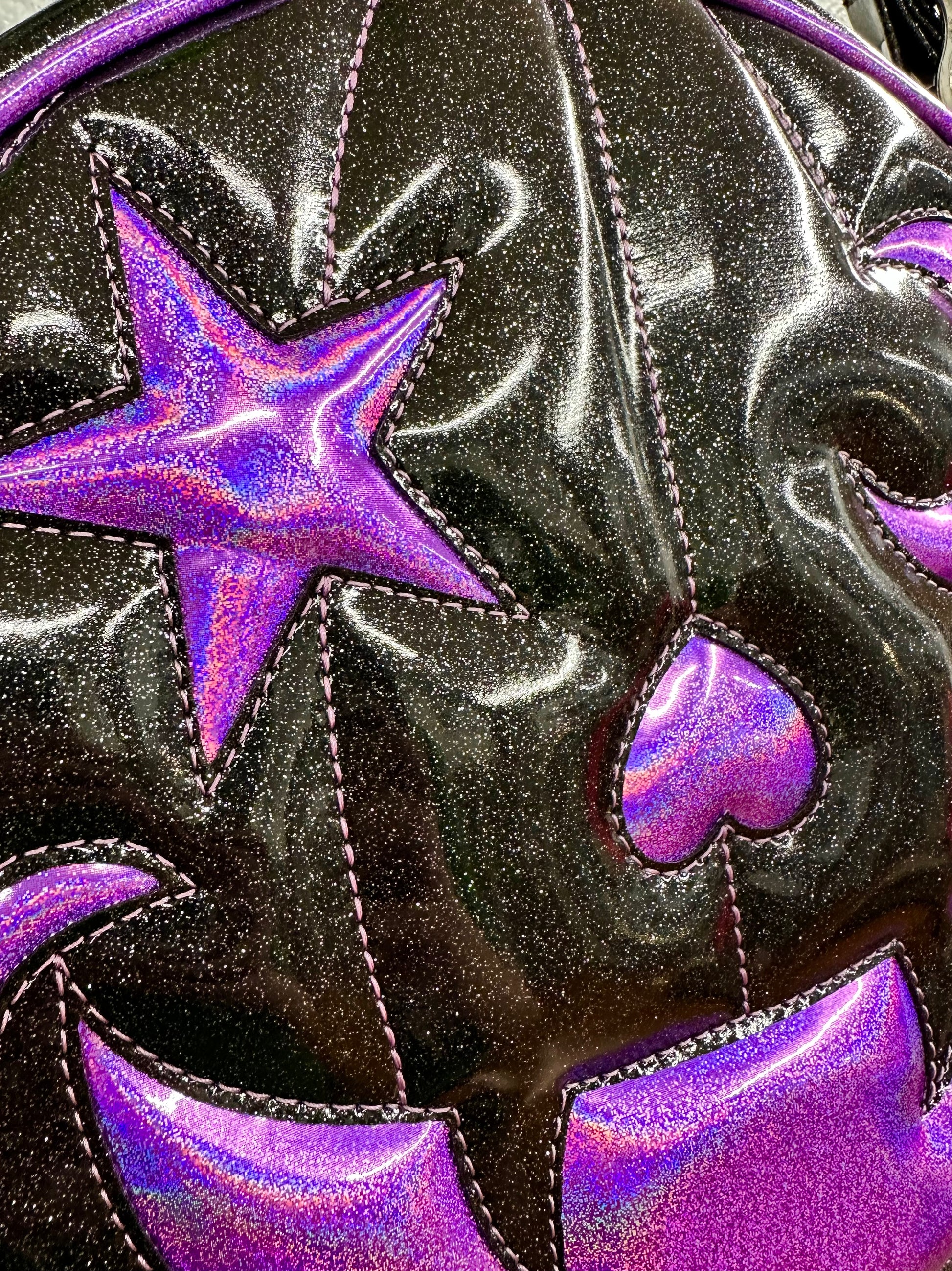 Starry Moon Cruiser Bag - Black Glitter and Lavender Holo Glitter Vinyl *PRE-ORDER