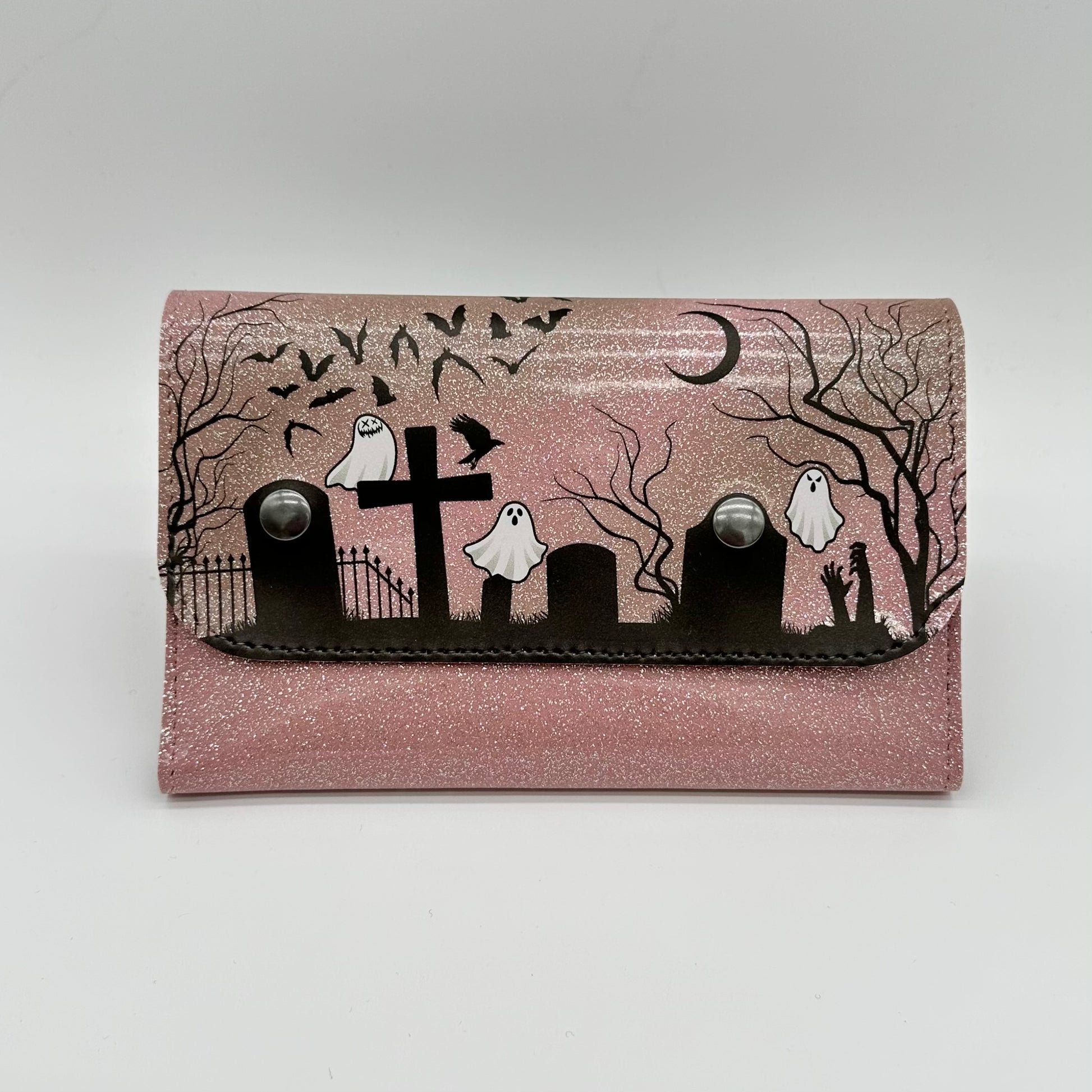 TALLER Graveyard Wallet - WITH GHOSTS - Pale Pink Glitter