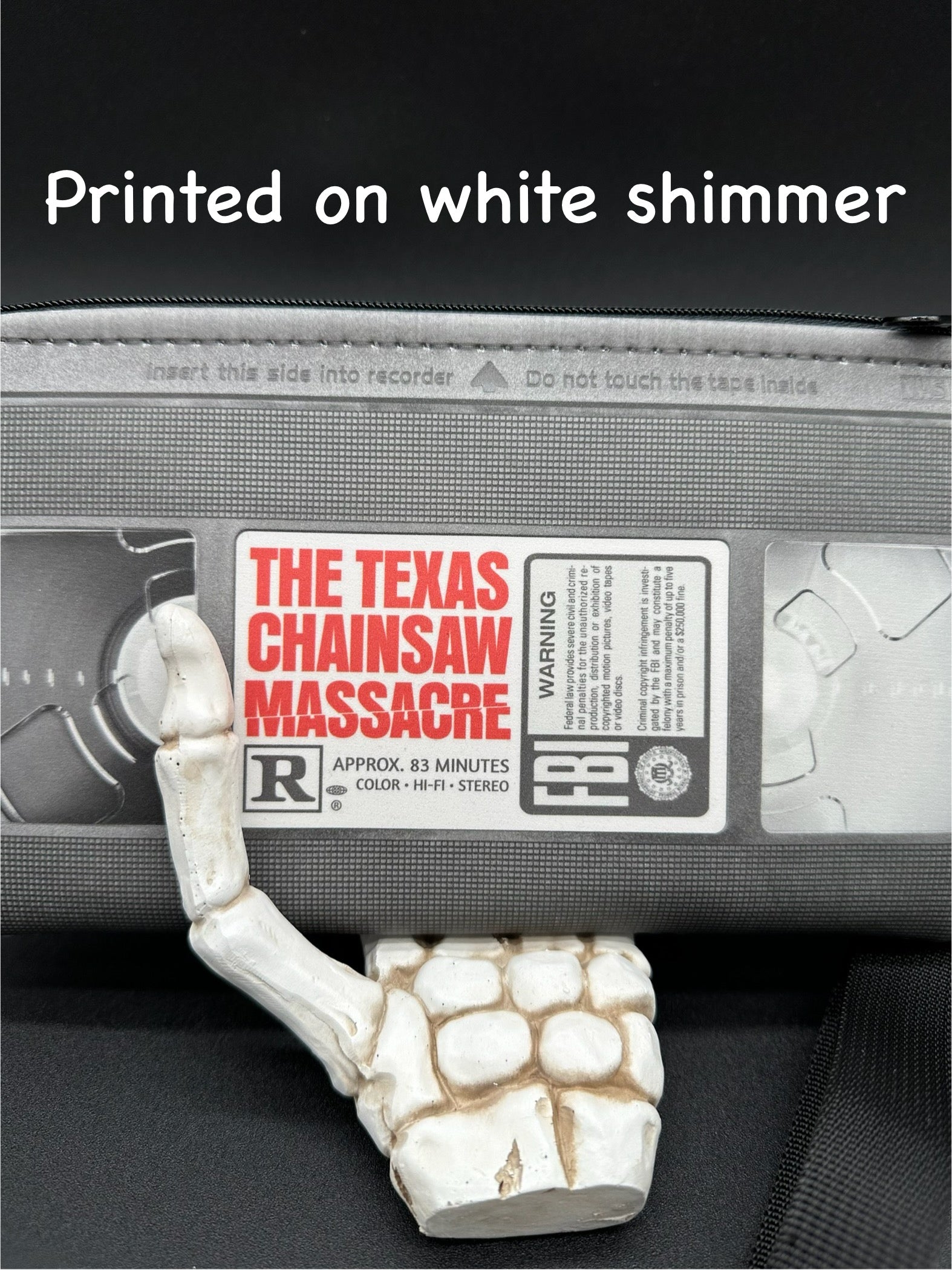 We are making these with three different types of vinyl: Shimmer Vinyl, Pearl Vinyl, and Glitter Vinyl. We print the image of the VHS tape directly onto the vinyl using our professional Roland UV Printer. Choose what type of vinyl you want using the drop-down menu and "add to cart." Then click or tap on "view cart" and write your movie title(s) in the "Order special instructions" box on the cart page. When checking out, please use an email address that you check often! We will send you a proof of the VHS with the movie you choose and will need approval before we make it. If you order multiples, just be sure to include all film titles in the note section.